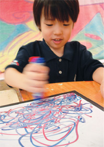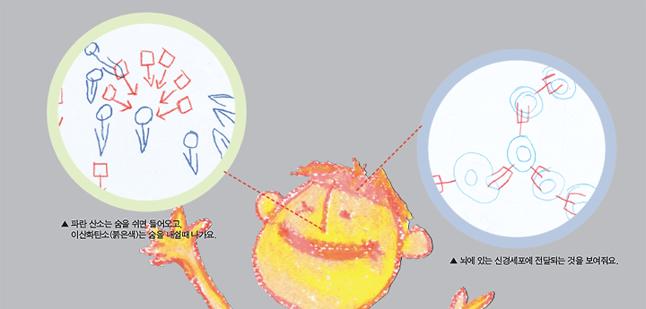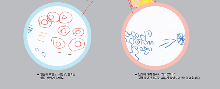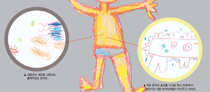 "여기에 백혈구와 적혈구가 있어요." 혈관을 그린 뒤 우석이가 말했습니다. "응? 뭐라고?" 5살 꼬마 아이가 말하기에 어려운 단어 같아서 처음엔 제 귀를 의심 했었습니다. 하지만 미술관에서 활동하는 모든 THINKBOX에 인체 이야기가 들려주는 우석이를 보며 현재 우석이 에게 '인체'가 얼마나 큰 관심사 인지 알 수 있었습니다. 우석이를 보는 분들마다 어린 아이가 어떻게 인체에 관해 잘 알고 있는지 궁금해 하십니다. 생각해보면 우석이 에게 '인체'란 또래 아이들이 좋아하는 자동차, 로보트와 같은 소재였을 것입니다. 우석이가 단지 그 소재를 접했을 때 다른 친구들 보다 좀 더 민감하게 받아들였던 것이겠지요.